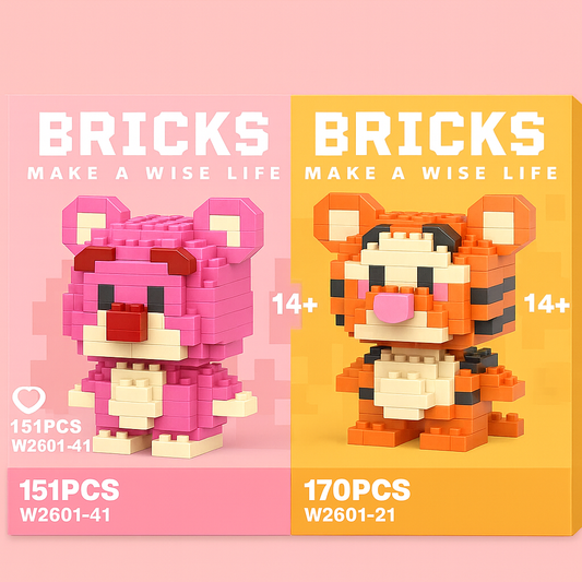 Mini Blocks Sevimli Çift Seti – Kaplan & Ayıcık Modeli