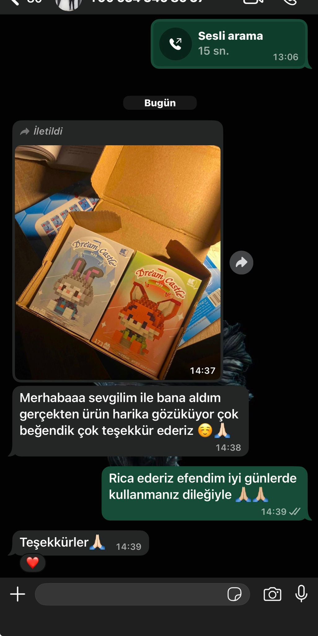Ürünlerin kaliteli olduğundan ve çok beğendiklerini söylediler.